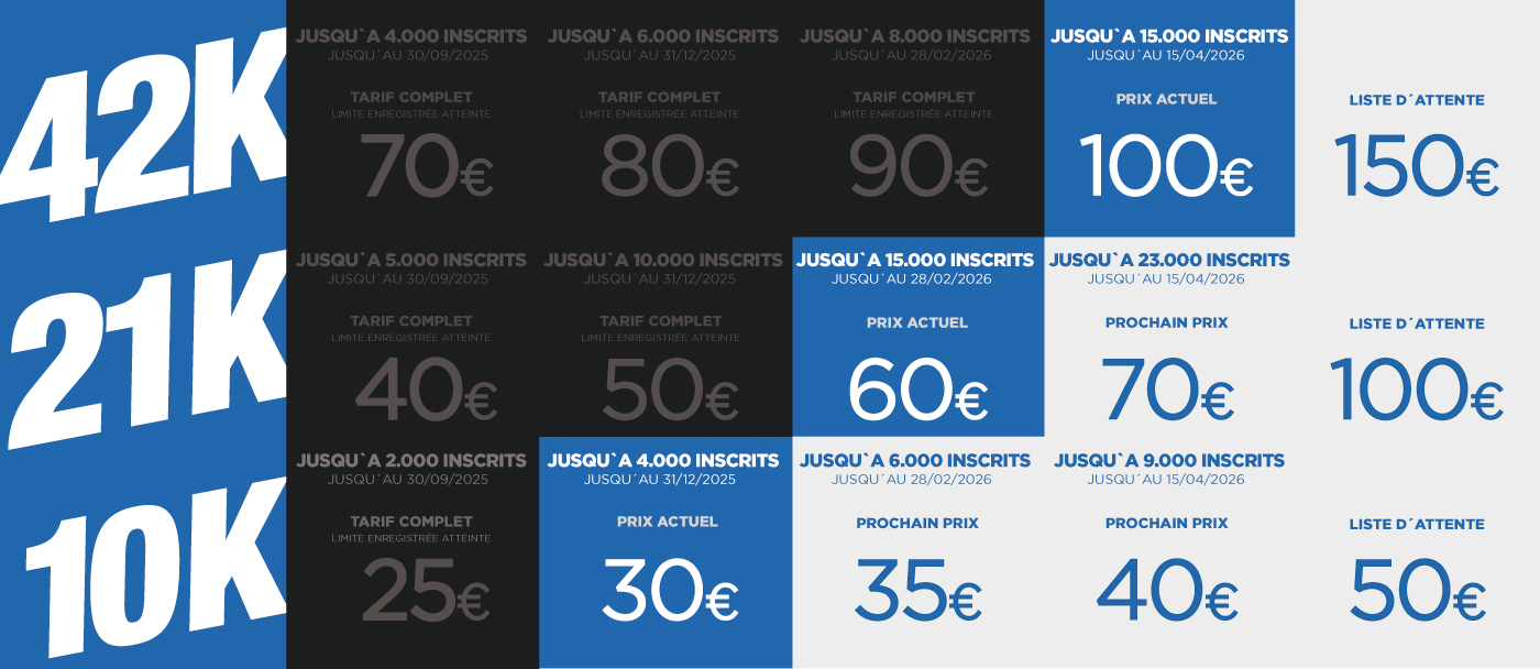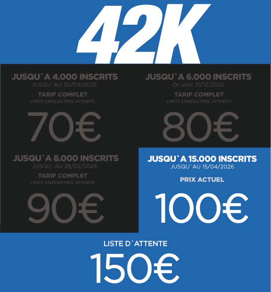 • Les inscriptions sont remboursables à 90% en cas de blessures sur présentation d´un certificat médical avant le 31/03/2026.